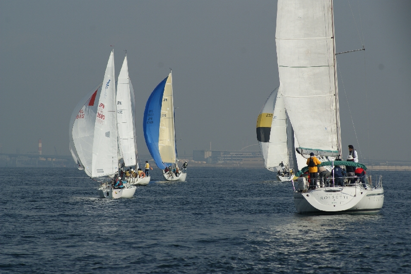 11月23日(日)、KYCポイントレースWHITESAILクラスが9艇の参加で開催されました。年間ポイントレースも残り2回となり激しい総合優勝争いも佳境を迎えています。朝から続く北東の軽風で第1レース(サイドマークありの変則コース)は予定通り11時にスタートしました。結果はKEY WEST(FARR34)がトップ。2位にはJ24で参加のCLARISが入りました。僅差で総合優勝争いをしているT DRACONIS(BAVA35MATCH)が3位となりました。
