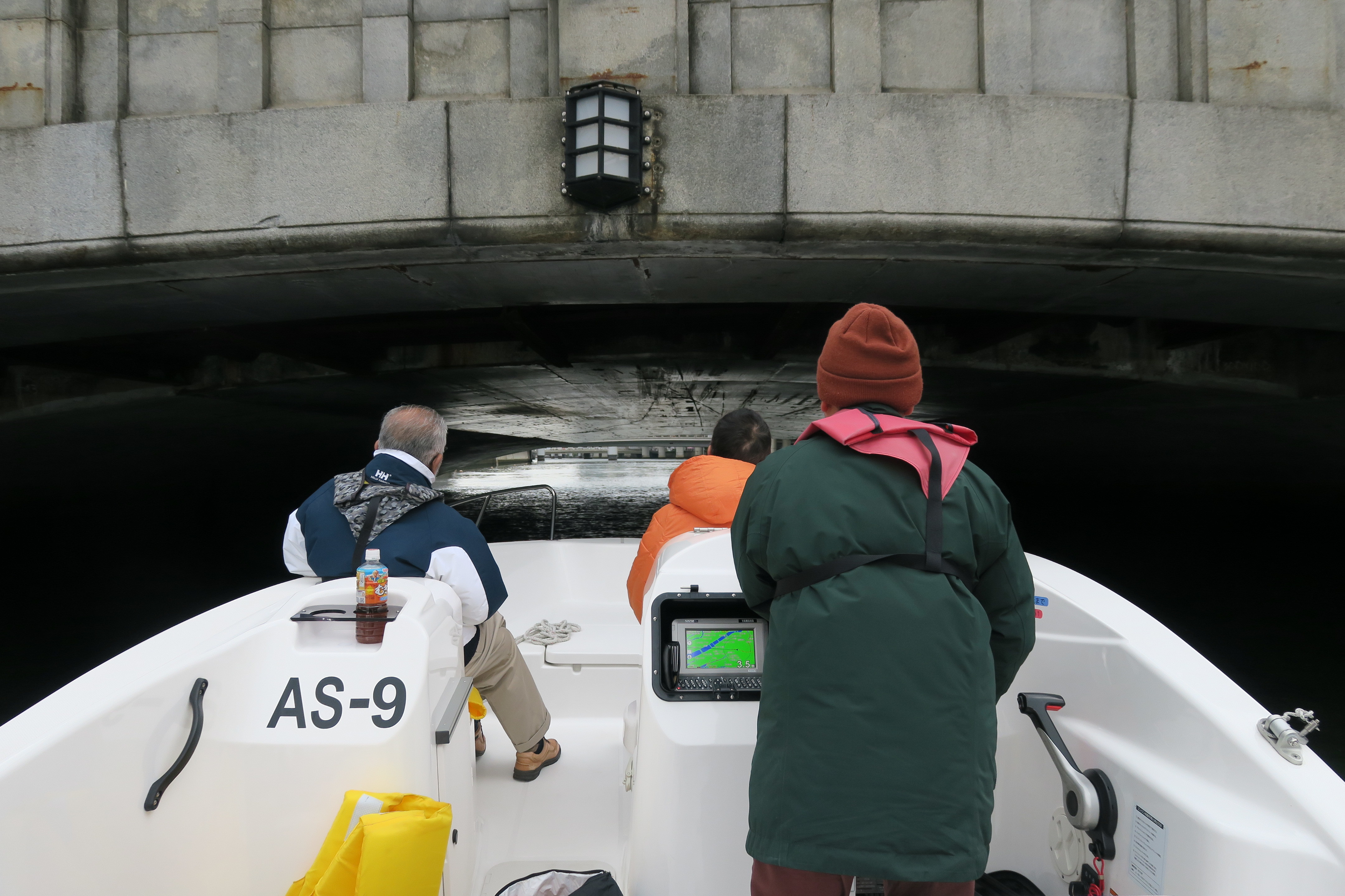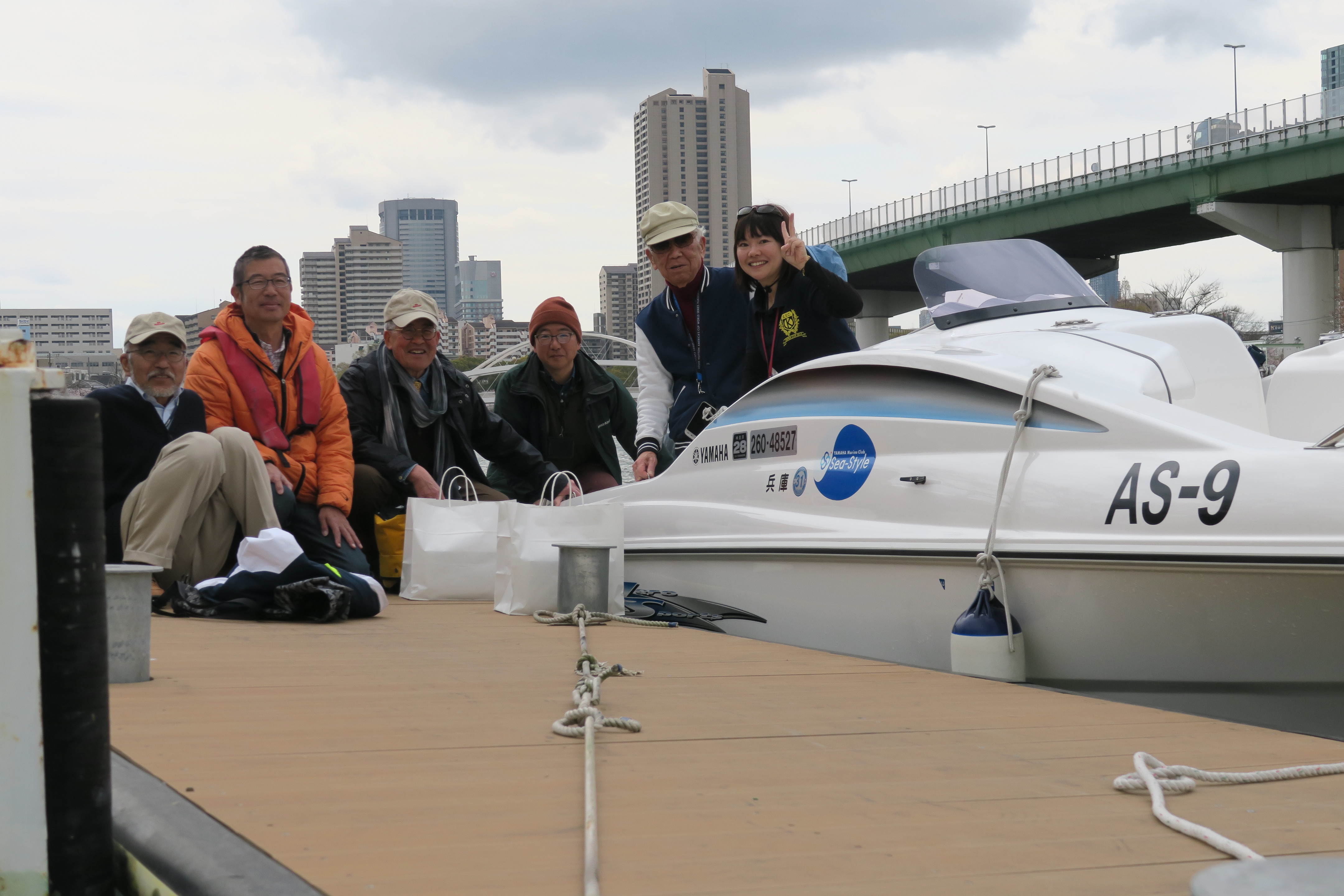 帝国ホテル前を過ぎ、桜ノ宮付近の桜並木のポンツーンへ。