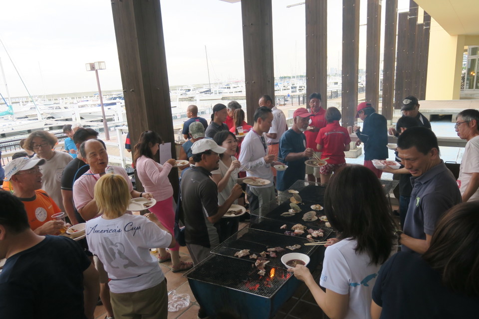サンセット宮川杯レースの終了後、ウェットバーにて