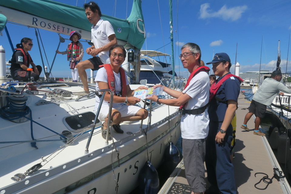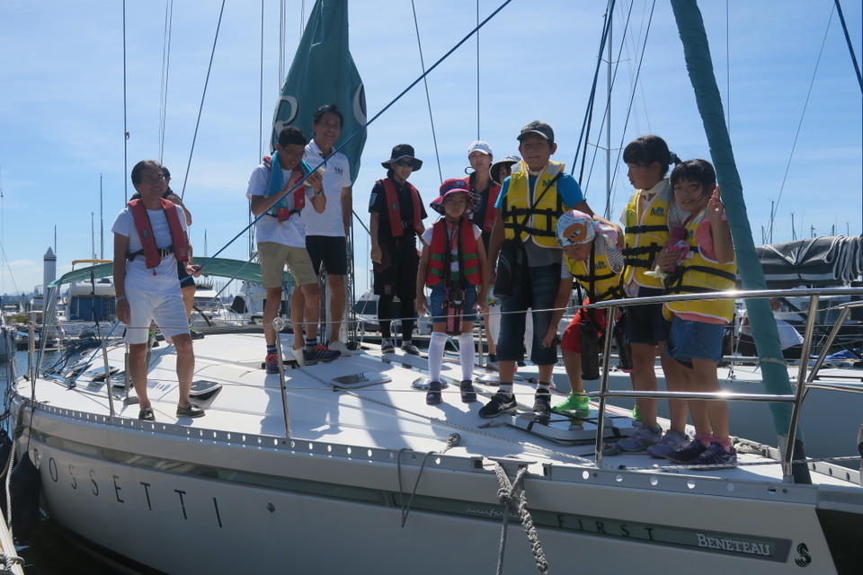 2018 第44回マリンウィーク 2018/7/22 地元の子供会の子供たち約70人をお招きして、海上保安庁による安全講話のあと、体験クルージングを開催しました。連日の猛暑にもかからず、元気一杯、楽しんでくれました。 また、本イベントにご協力いただきました各艇のオーナー様、クルーの皆様、誠にありがとうございました。 協力艇:EXINGⅢ、OTENTO SUN、CHRISTINA ROSETTI、HIPAHIPA